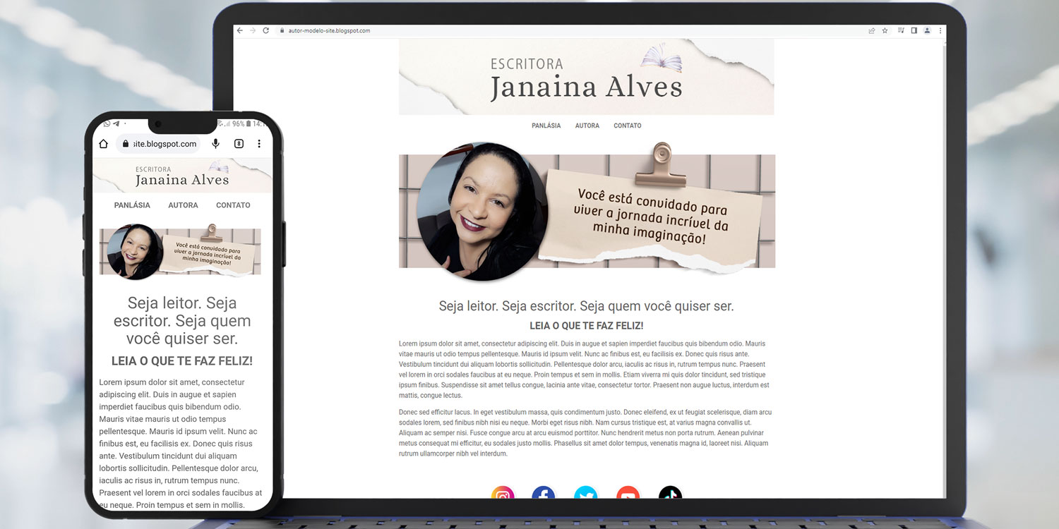- Incluso configuração de domínio personalizado (ex.: www.nomedoautor.com.br), caso o autor compre o mesmo no site Registro.br.